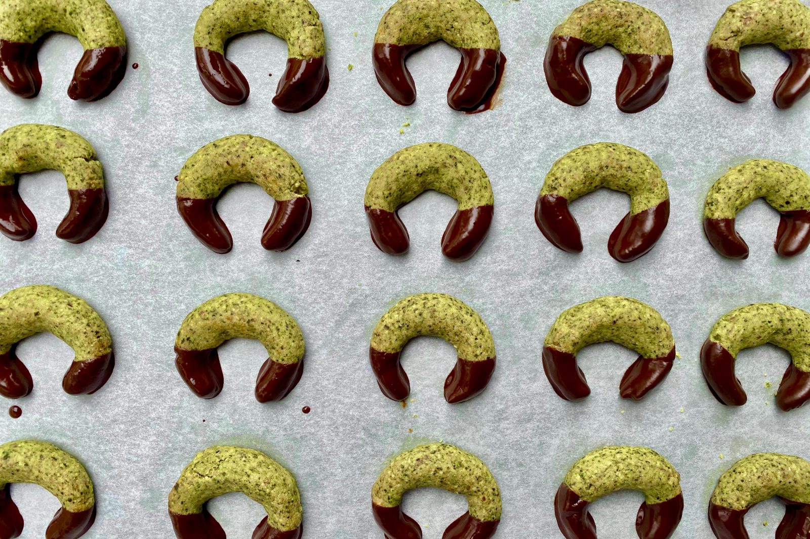 Wenn du bereits das BESTE Vanillekipferl-Rezept von Oma hast, wie z.B. das von Geheimrezept von Katharina Karmels Oma, sich deine Weihnachts-Keksdose aber trotzdem mal nach etwas Abwechslung sehnt– einfach im Rezept die geriebenen Mandeln mit Kürbiskernen austauschen – und die Dose dieses Jahr mit grünen kleinen Kipferl füllen.